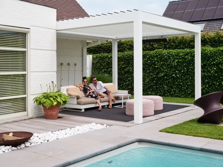 De bekroonde terrasoverkapping met kantelbare lamellen